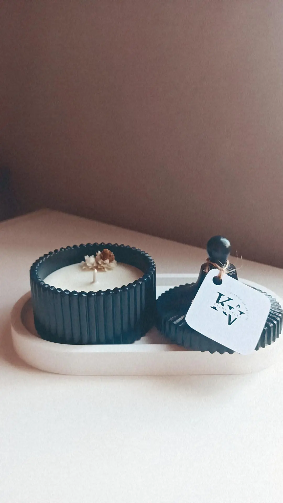 Vela de soja aromática en Caramelera negra con Deco de flores secas (el modelo de las flores puede variar)