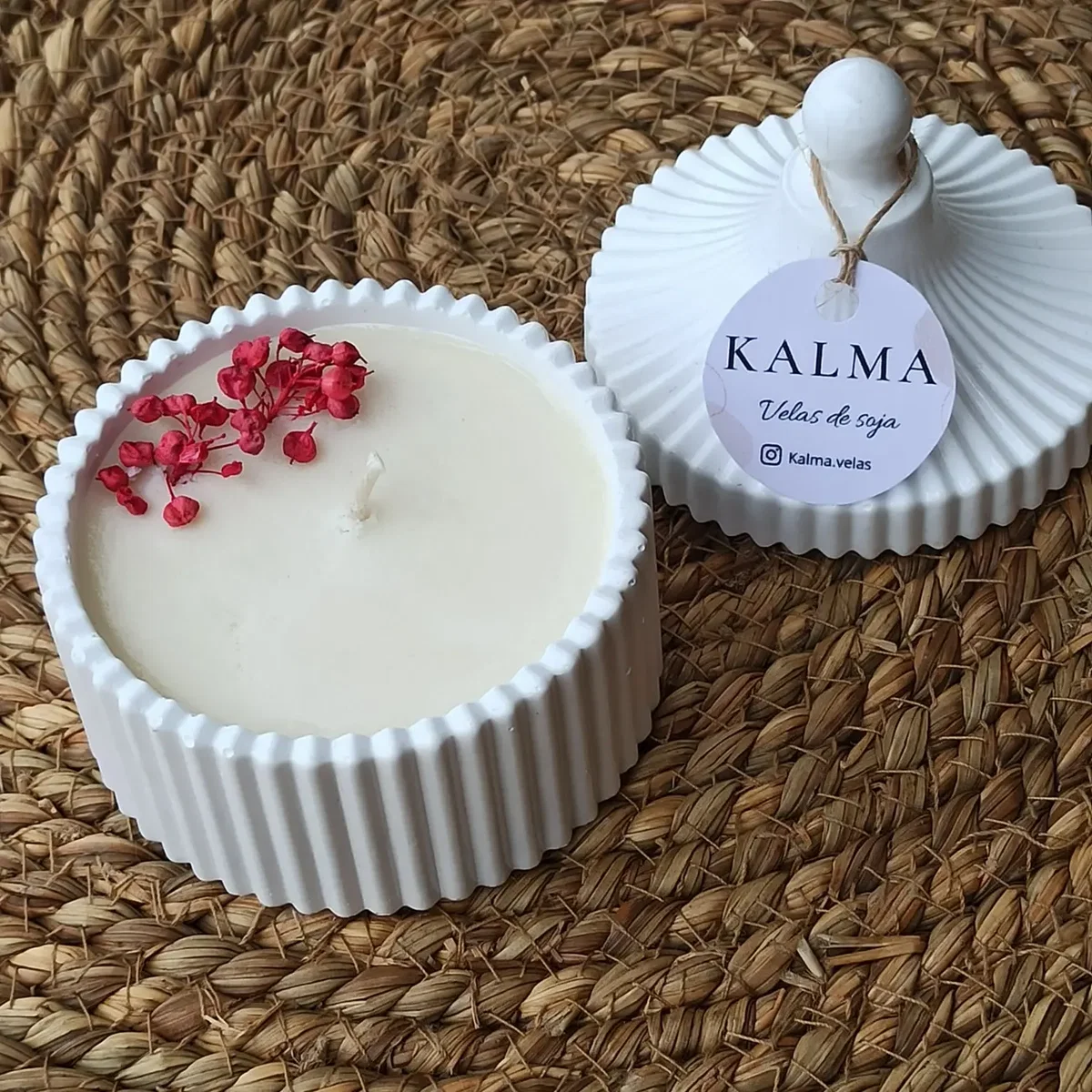 Vela de soja aromática en Caramelera blanca impermeabilizada con Deco flores (el modelo de las flores puede variar)
