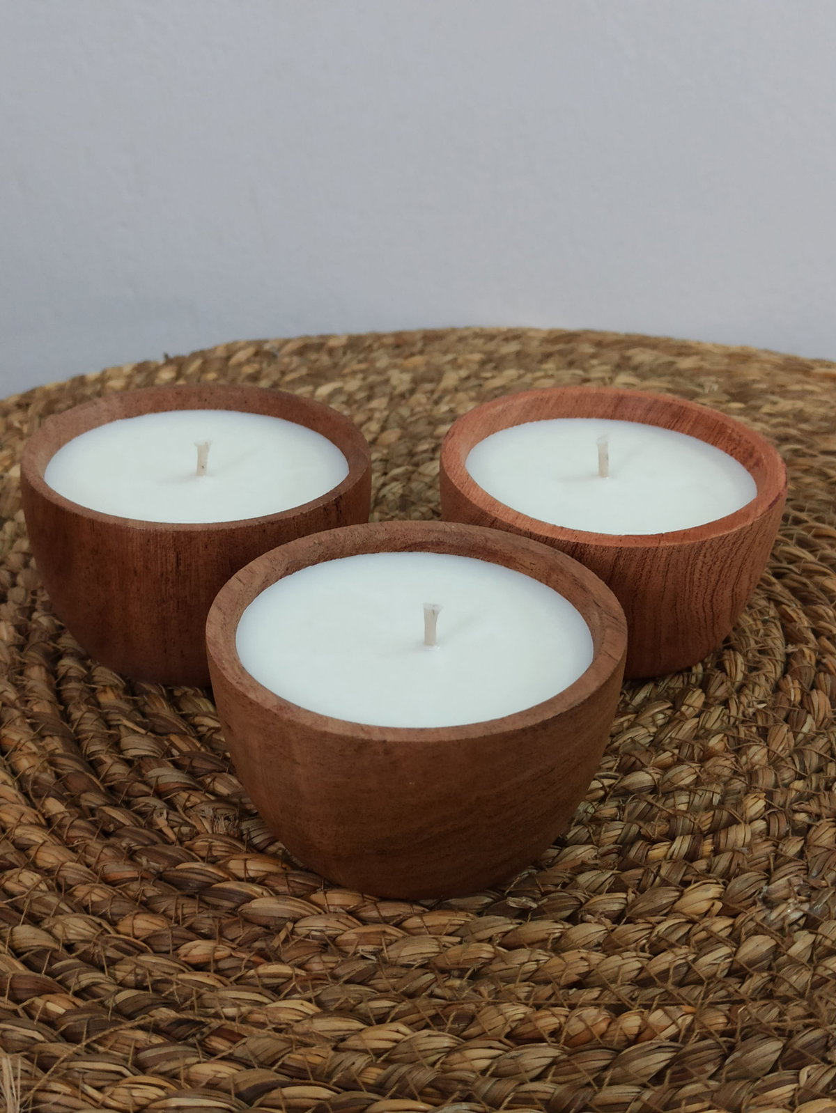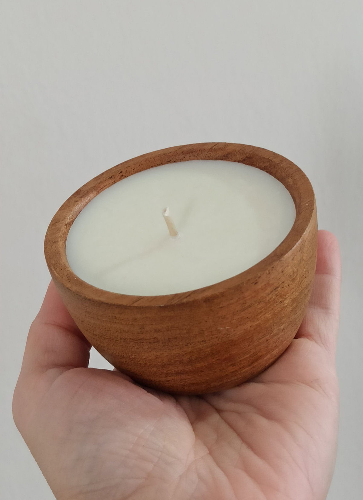 Vela de soja aromática en cuenco de madera 8cm x 5 CM aprox.