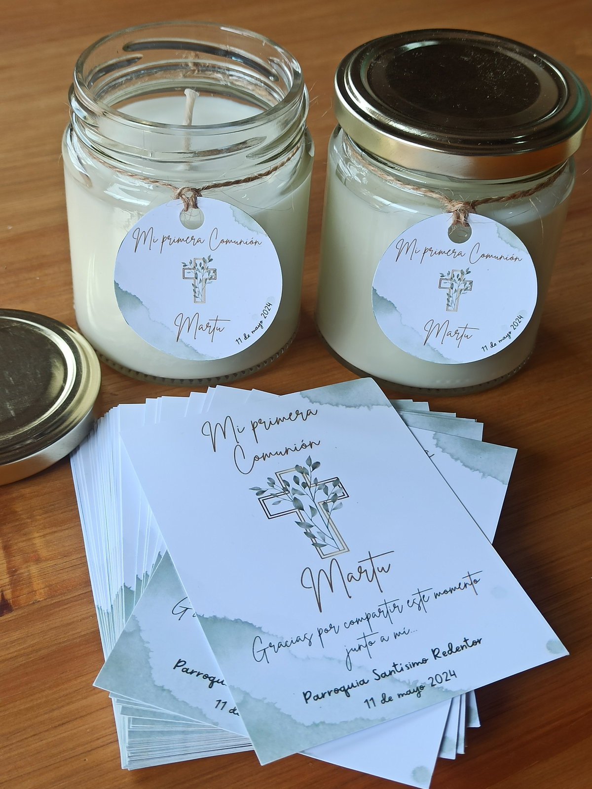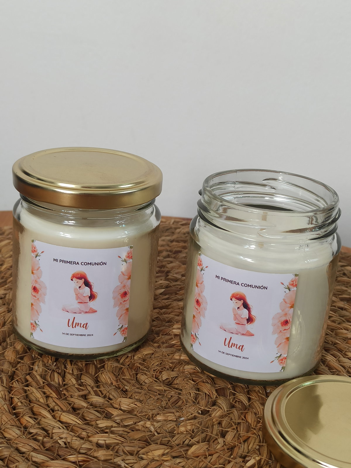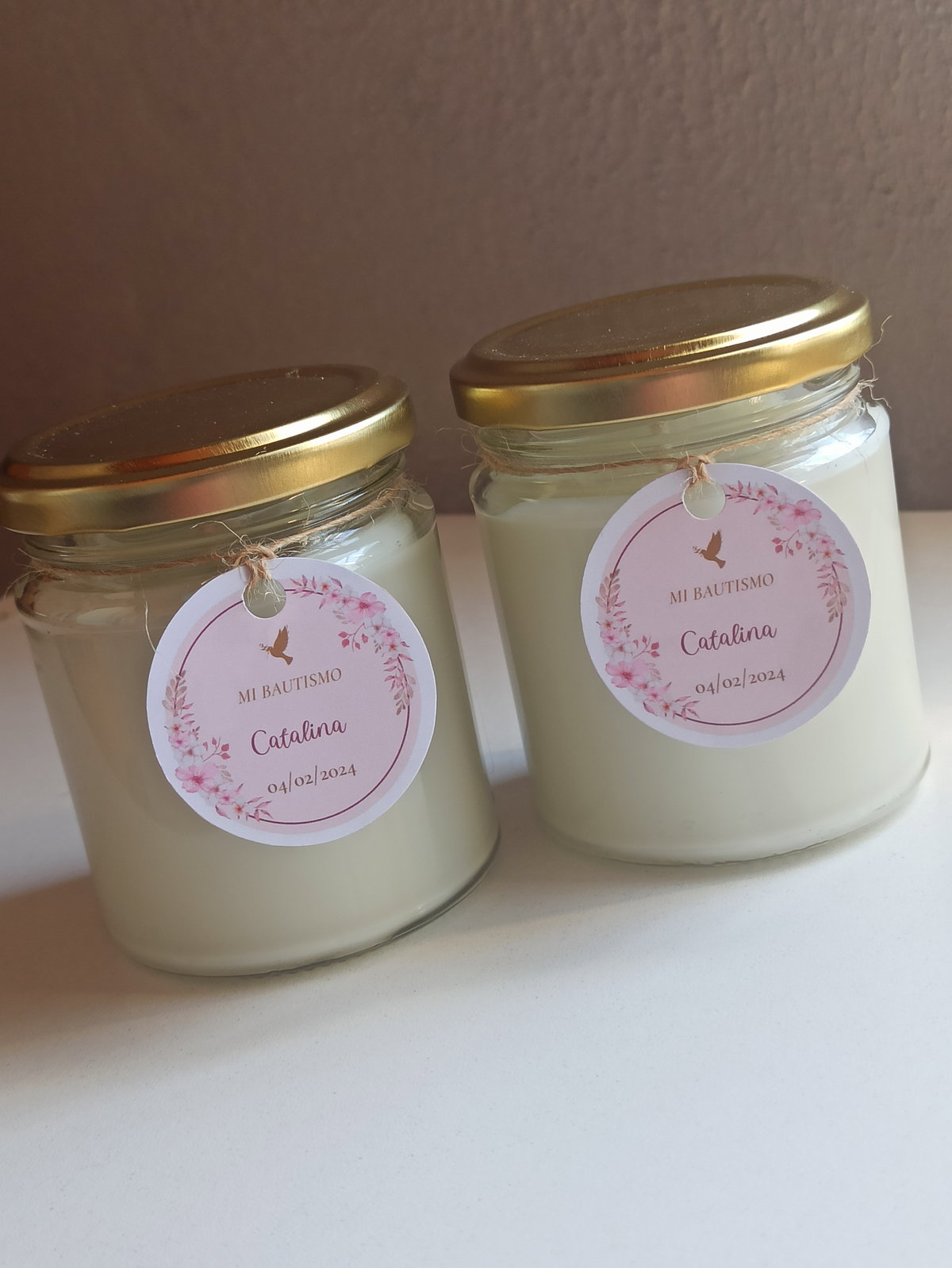 Vela de soja aromática en frasco de vidrio de 200cc con tapa dorada. Etiqueta adhesiva o colgante