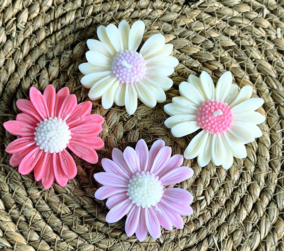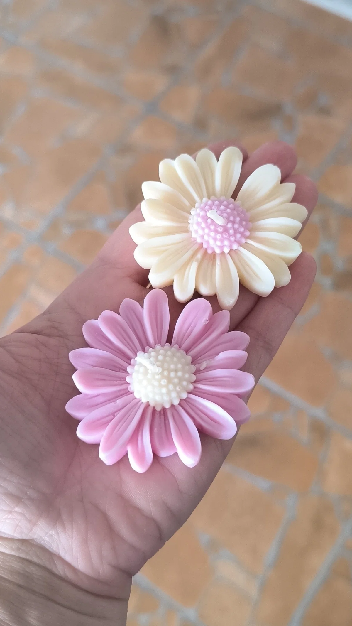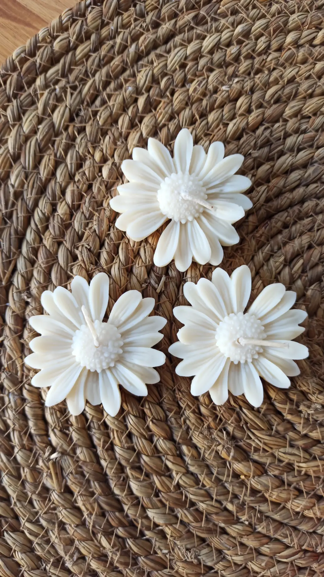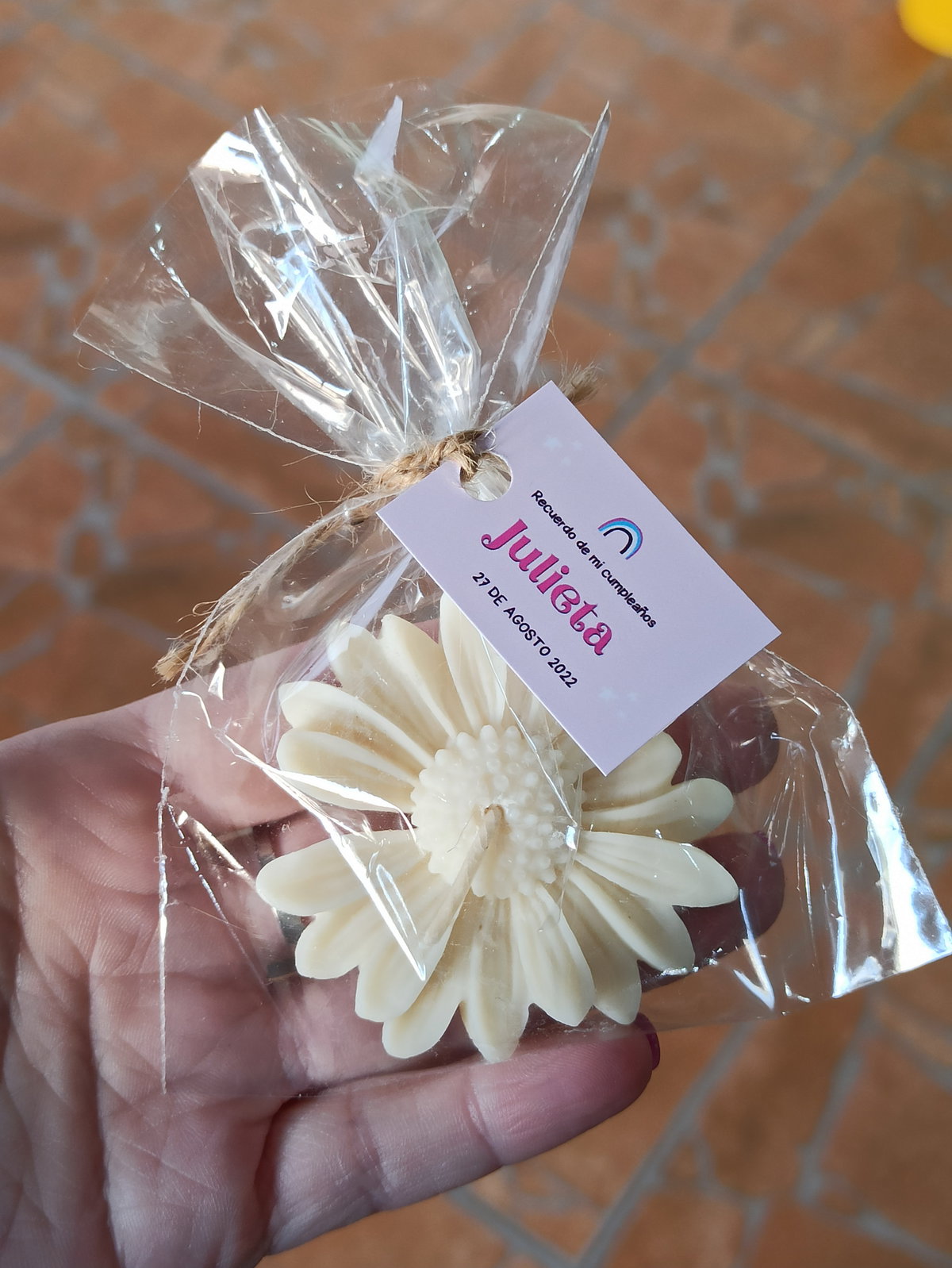 Vela de soja aromática forma de Margarita con bolsita transparente y etiqueta personalizada colgante